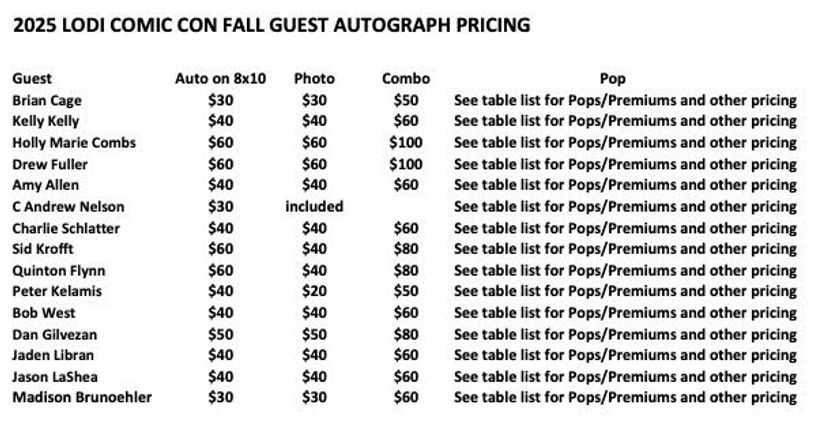 Most guests will be at Lodi Comic Con Fall from at least 11am-4pm.